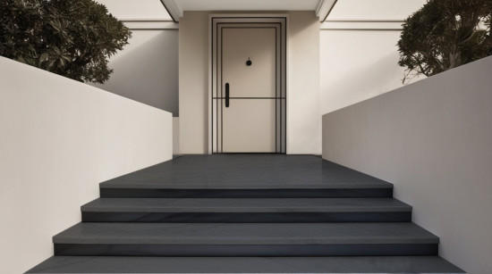 Haustür und mit Ausschnitt für Abtreter.